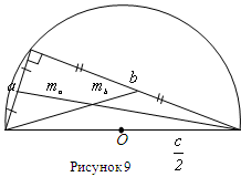 гипотенуза, медиана, свойства медианы. Так же для решения задачи вторым