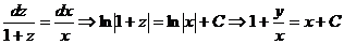 искомая функция задается уравнением с разделяющимися переменными. Решая это