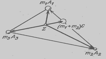 целесообразно распространить понятие центра масс на случай материальных точек и
