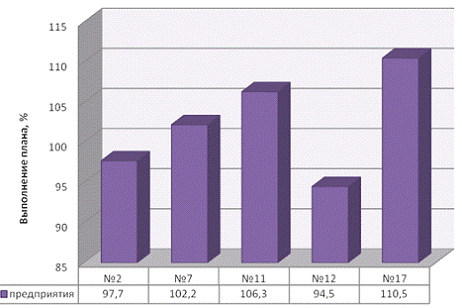 деятельности предприятий № 2, 7, 11, 12, 17 за отчетный и базисный годы, можно
