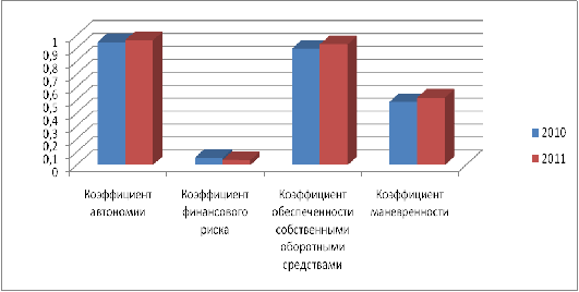 Расчет коэффициентов финансовой устойчивости ООО «АСКЕР» за 2010-2011 гг.