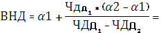 инфляции в 20%. Для более точного расчета ВНД, в качестве α1
