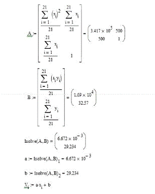 помощью метода наименьшего квадрата для определения мольной теплоёмкости.