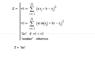Рисунок 1.5 - График функций линейного и нелинейного уравнений