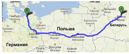 города Минск и авиатранспортом до города Росток).