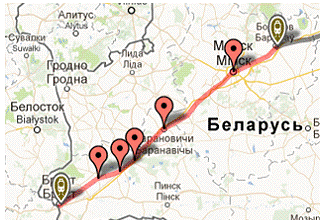 Рисунок 3.5 - Железнодорожный маршрут Борисов -