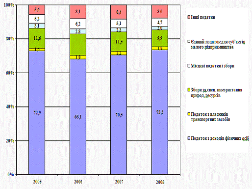 місцевих податків і зборів в формуванні доходів місцевих бюджетів;