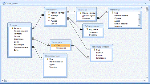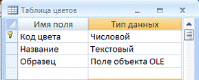 цвета» и «Код» являются ключевыми в соответствующих таблицах.