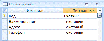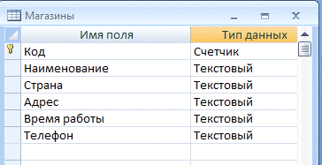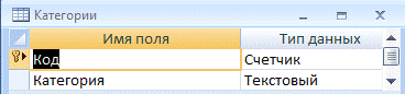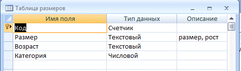 служит для нормализации структуры базы данных и состоит из следующих полей,