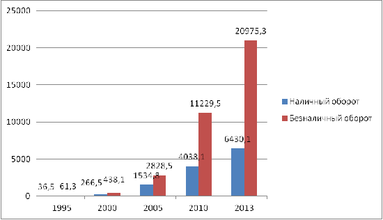 электронных носителей. Разрыв между наличными и безналичными средствами в