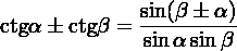 ctg (α + β) = (ctg α · ctg β + 1) ÷ (ctg β - ctg α)