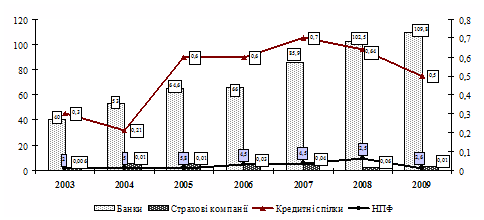 кредитні установи, пенсійні фонди та інші фінансові установи сприяють