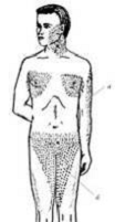 области грудных мышц до подмышечных впадин, а также ниже пупка в области