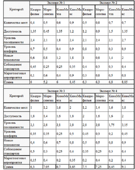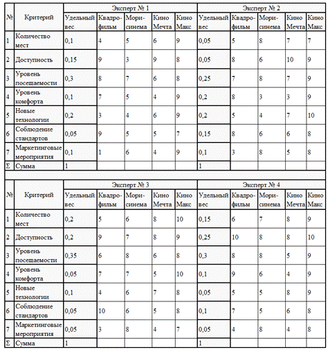 собой экспертное оценивание кинотеатров для выявления лидера.