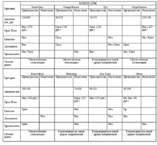 конкуренция кинотеатр маркетинговый финансовый