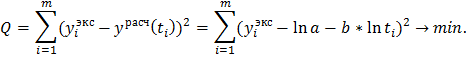 Y2). ^2);=fminsearch (@G2, [1,1], [],Y1,T1,V01) % Степенная.=V01. *