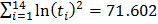 времени по точкам.=1.35;=14;=fminsearch (@G1,1, [],Y1,T1,V01) %