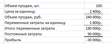 при наихудшем варианте (переменные затраты 1800 руб. за единицу).