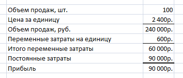 при наилучшем варианте (переменные затраты 600 руб. за единицу).