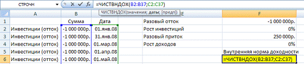 внутренней нормы доходности от роста/уменьшения доходов по проекту