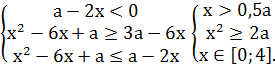 эта прямая имеет с нужной нам областью одну точку пересечения при a=3: