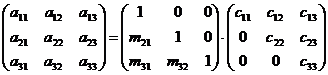 Определитель исходной матрицы будет равен произведению определителей