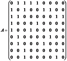 матрица смежности графа, изображенного на рис.1.1, имеет вид