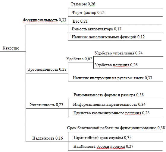 дерево свойств с нормированными коэффициентами весомости, откуда наглядно можно