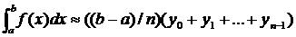 int_rectangle(n,a,b)= (b-a)/n;= 0;= a:h:b;i = 1:n= s+f(x(i))*h;y = f(x)