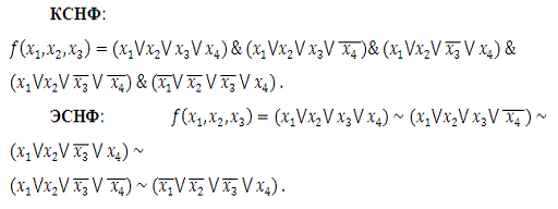получения КСНФ, ЭСНФ используем термы для 0 значений функции: