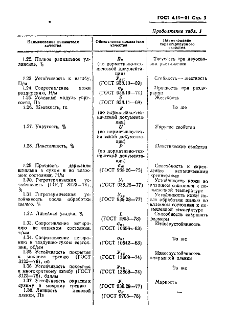 4.11-81 «Система показателей качества продукции. Кожа. Номенклатура показателей