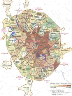 востоке города. Самые чистые районы - Ясенево, Крылатское, Строгино, район м.