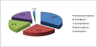 преобладающую жизненную форму - гемикриптофиты (34%). Второе место занимают