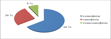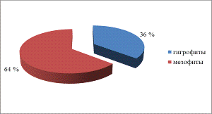 показал, что среди гидроморф преобладают мезофиты (39 видов), а среди гелиоморф