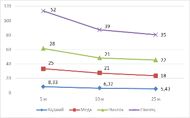 содержания тяжёлых металлов вблизи автотрассы в 1,2 - 1,7 раза и содержания