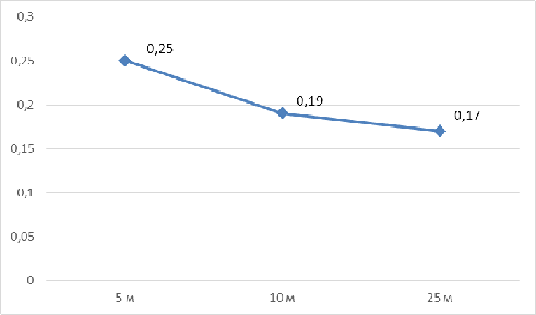 общего проективного покрытия с 60% (на расстоянии 5 м) до 70% (на расстоянии 10