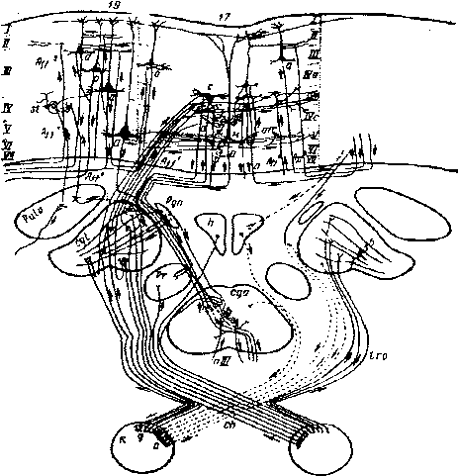 глаза, промежуточных - подкорковых зрительных центров и конечного звена - зрительного