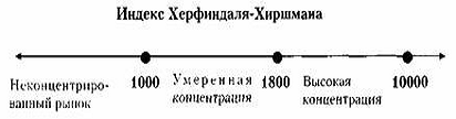Рассчитанное значение индекса Херфиндаля-Хиршмана находится в