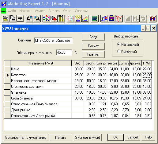конкурентной карты рынка, проведение SWOT-анализа, вычисление индекса