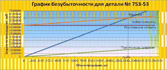 Расчет точки безубыточности для детали №753-08опт = 350 * 11000 / (600 -