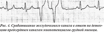 желудочкового канала в ответ на детекцию предсердным каналом миопотенциалов