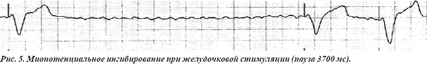 желудочковой стимуляции (пауза 3700мсек), возможно, как проявления