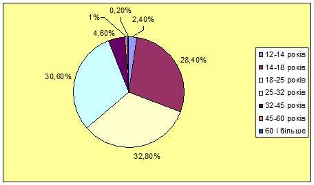 інші. На рисунку 2.6 зображена сегментація споживачів за віком.