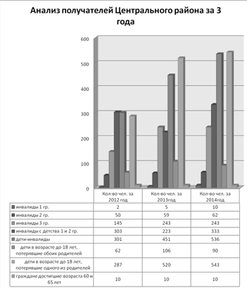 районах. Анализируя эту информацию выясняется то, что процент прироста получателей