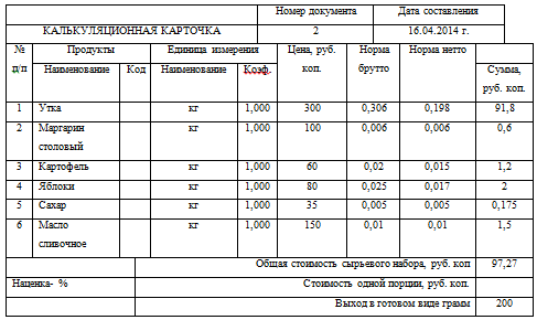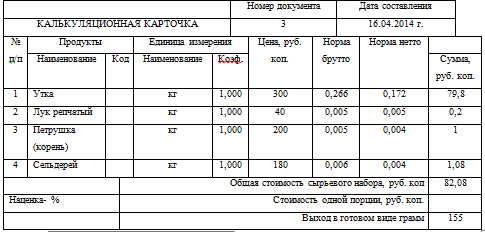 3.2 Расчет стоимости блюд (калькуляция блюд)
