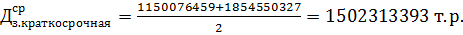 и краткосрочной задолженностей на начало и конец года соответственно, т.р.