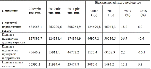 податкових пільг на формування дохідної частини бюджету, а також виявлення