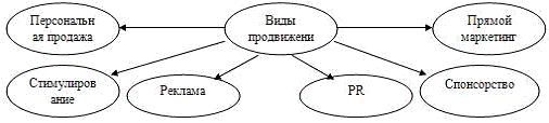 сбыт, отраслевые выставки, лотереи, средства массовой информации, прямые