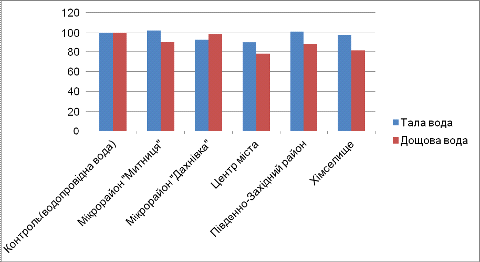на рівень токсичності проб дощових і талих вод.