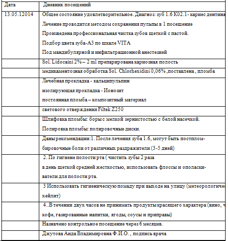 Окончательный диагноз: зуб 1.6- К02.1 Кариес дентина.